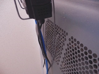 工夫したのは、テレビの後ろの排気口の穴がいっぱいある所に