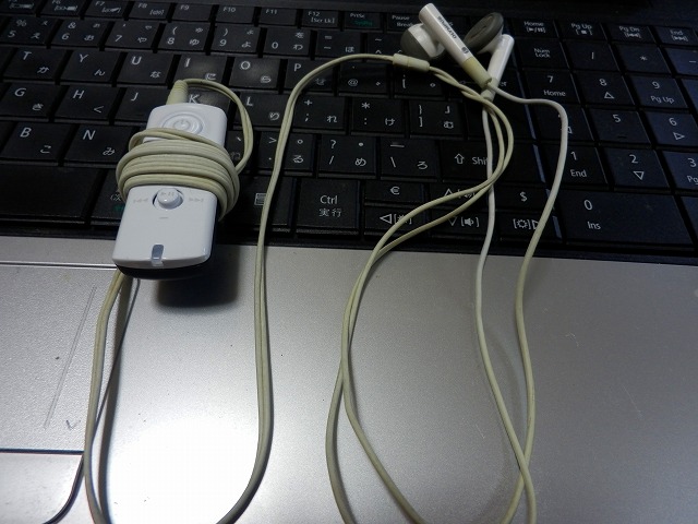①手持ちのイヤホンの線が長すぎるので、本体にコードを巻きつける
